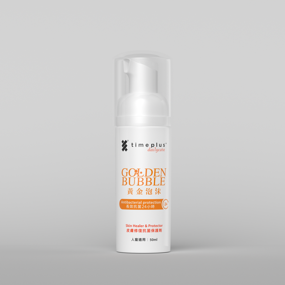 timeplus+ 黃金泡沫會附著皮膚表面形成保護層,並殺死所接觸的微生物